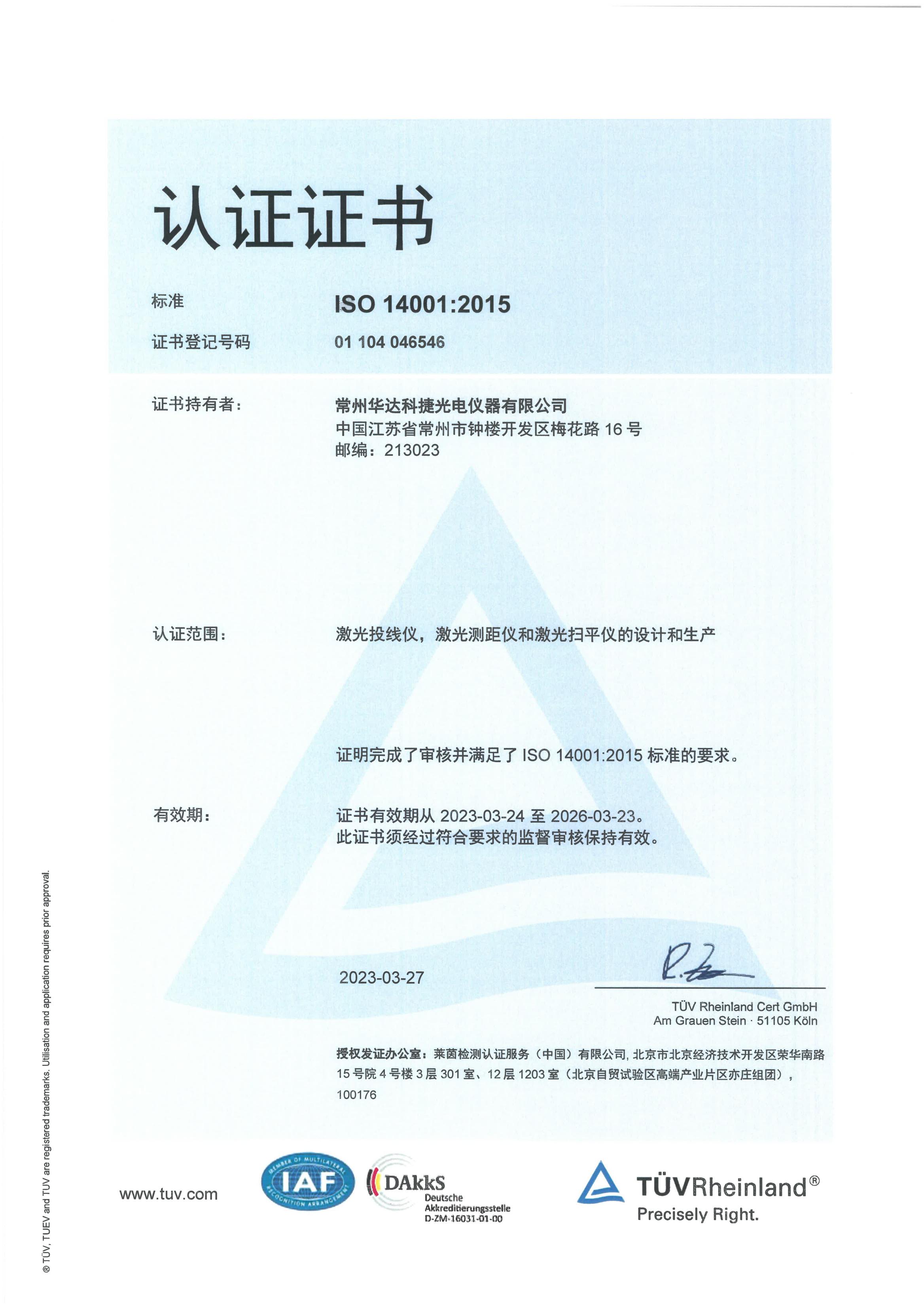 2023/03/31In order to further standardize and improve the company system and optimize the internal management system of the organization, our company has recently passed the audit of ISO 14001:2015 environmental management system of Rheinland. It marks that our company has entered into the track of standardized, standardized and scientific modern enterprise management, and the management and culture of the enterprise has stepped up to a new level.