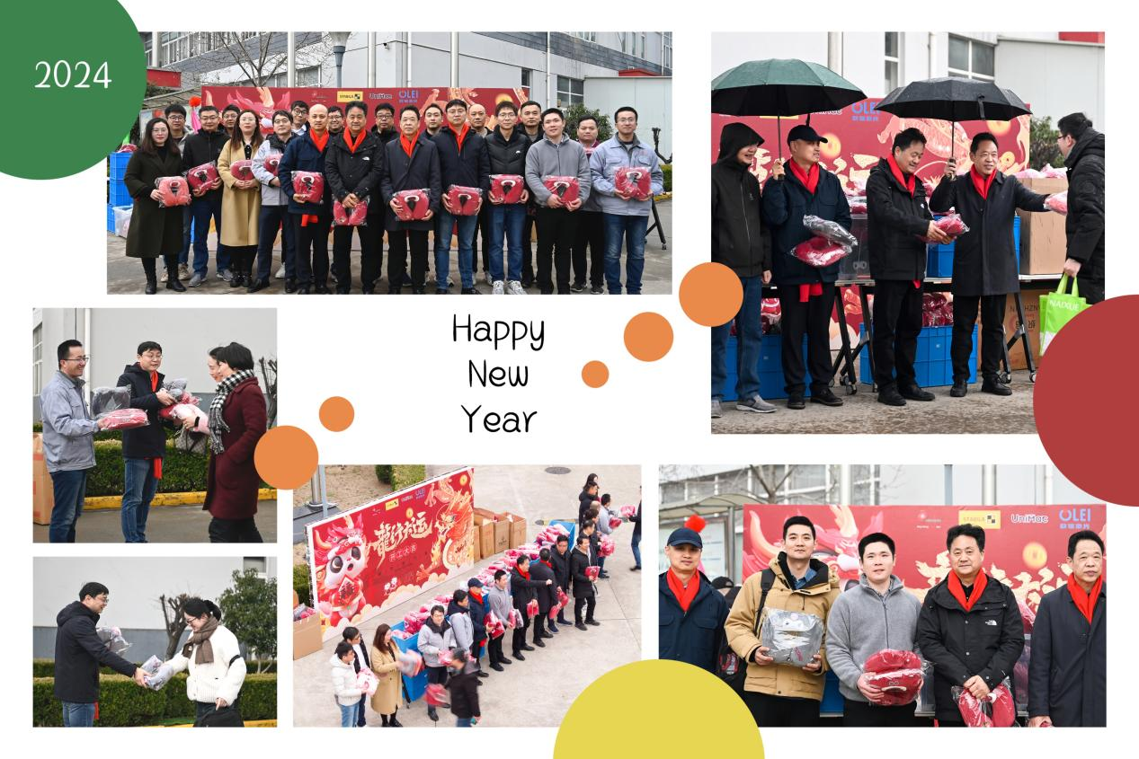 领导们早早地来到现场,喜气洋洋地将一份份精心准备的伴手礼递到员工们手中,送上了新年的祝福和鼓励,现场气氛温馨而融洽。